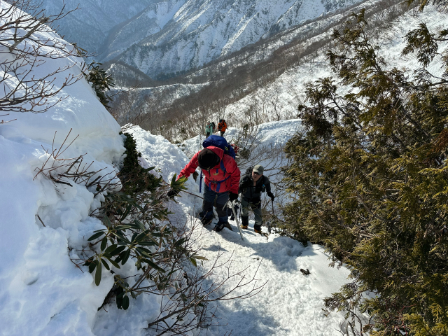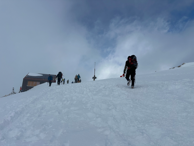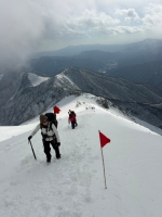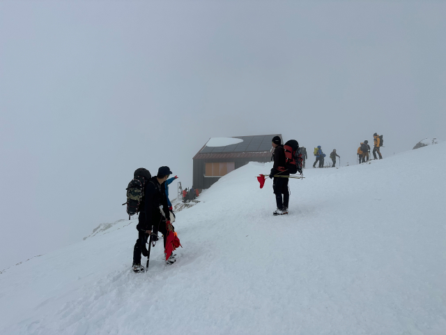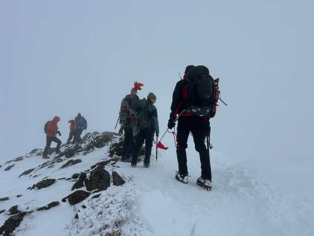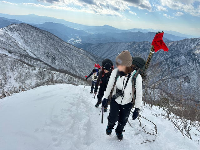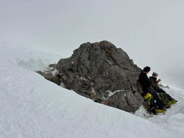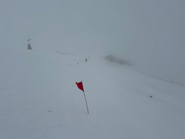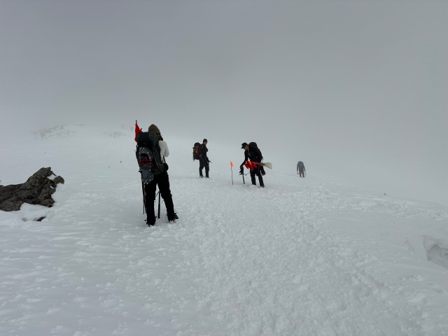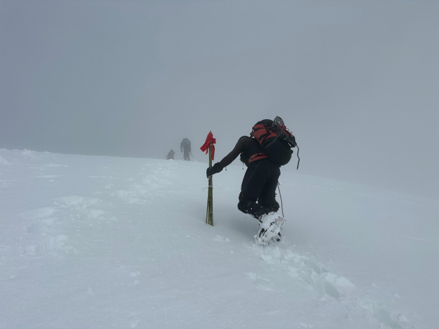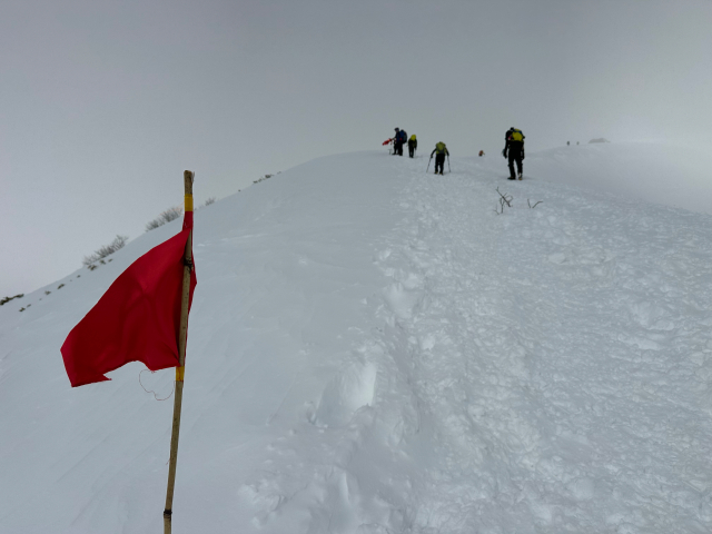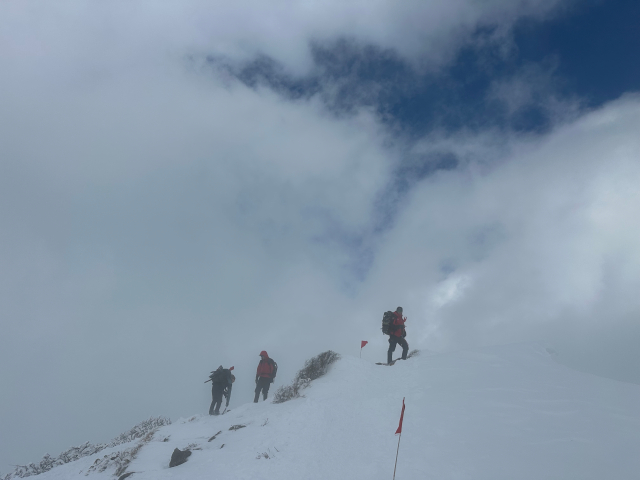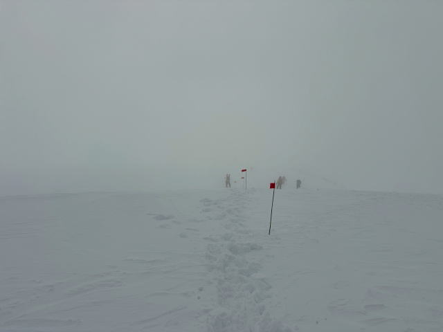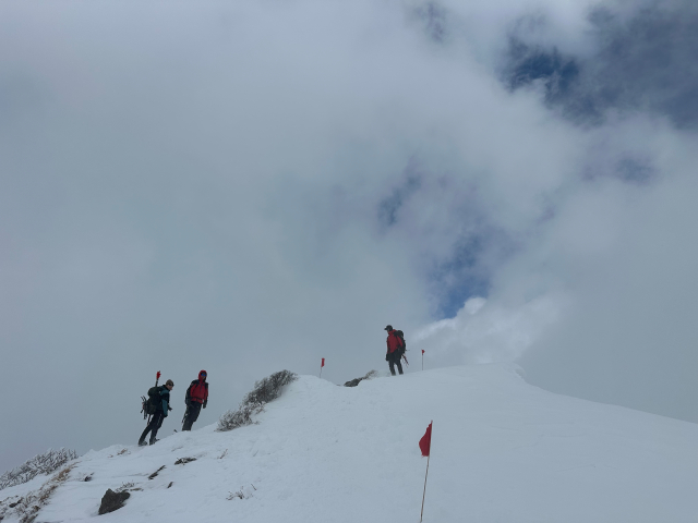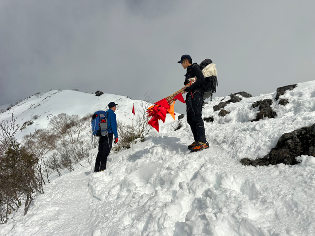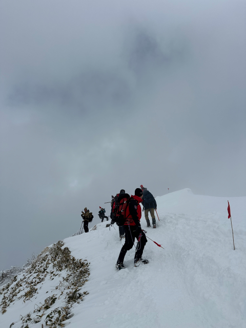 | 12/30: 「今年も登り納めは、山岳警備隊と谷川岳天神尾根の遭難防止の旗立てでした。 登り始めは青空が出ていましたが、肩の広場では真っ白に。 早速、旗がいい仕事をしてました。今日も多くの登山客が登っていました。 今年は元旦早々に遭難があったそうなので、ホワイトアウトしても旗を見つけて、無事に下山できることを願うばかり これで、2025年も楽しく山に登ることができました。2026年も素晴らしい景色に出会えますように。」 |