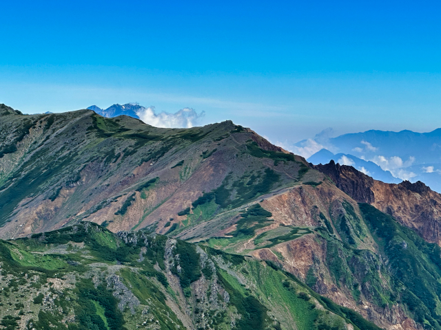 | 2024/8/4〜7 ママは、ガイドで双六岳方面へ。 8/6(火) 3日目の画像。 「この4日間は皆さんと、北アルプスの鷲羽岳・双六岳・三俣蓮華岳に登ってきました。 久しぶりの黒部源流。雄大なカール地形とゆったりとした山容。そして満開のお花畑。 スマホの中は、花と山と食べ物の画像でいっぱいです(笑) 小屋には親子連れさん、学生さんなど、夏休みを利用して、多くの方達が楽しまれていました。 天気良く、槍ヶ岳を始め、飛騨山脈一望の4日間でした。」 |