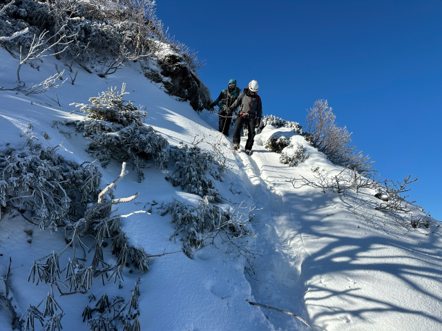 | 2025/12/22〜23 ママはアイスクライミングしに八ヶ岳へ 「今年は八ヶ岳の夏沢鉱泉アイスギャラリーでシーズンインしました。 G4F1とG3F1ではリード練習をして、薄暗くなるまで登り、久しぶりに腕がパンパンになりました。 次の日は天狗岳へ。ショートロープトレーニング。 雪は少なめでしたが、風も無く大快晴の八ヶ岳でした。 夏沢鉱泉小屋では、カボチャの煮物や食後にはシュトレーンが振る舞われ、ひと足早くクリスマス。 次の日は、根石小屋までドローンで荷物を搬送する本確稼働日と知り、下山しながらドローン見学。 アイスに登山に快適な山小屋生活と大満喫した2日間でした。」 12/23の画像 |