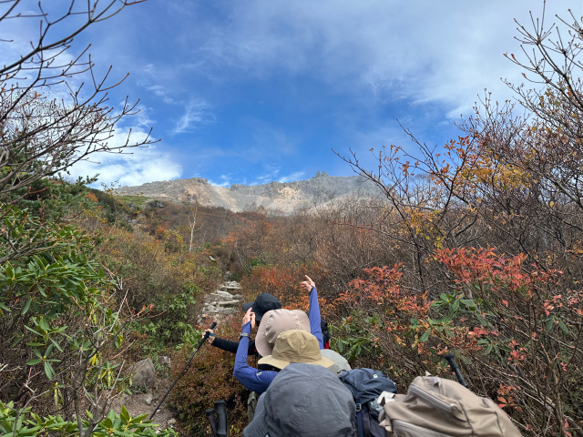 | 2025/10/19〜20 ママは那須連山へ。 「皆さんと三斗小屋 煙草屋に泊まり紅葉の那須連山を楽しんできました。 心配したど渋滞の道路と駐車場は、気象予報サイト「天気とくらす」が”登山C”をつけてくれたお陰で(笑)スムーズに集合することが出来、姥ヶ平からの素晴らしい紅葉や三本槍、朝日岳からの絶景を楽しむことができました。 歩いて行かなければ入ることができない、秘境「三斗小屋 煙草屋」の露天風呂とお膳の食事、朝食の温泉卵も最高でした!」 10/19の画像 |