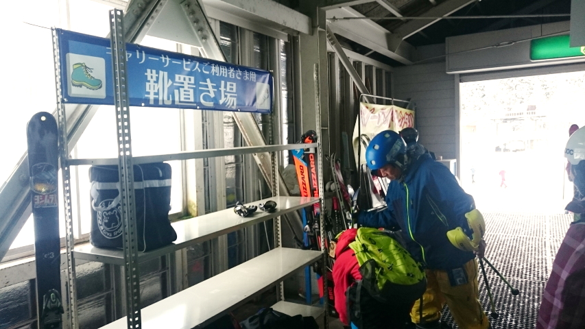 | プラスノーを滑って行くという選択肢もあったけど、誘った2人は今季初滑りなんで、ちょっとプラスノーは難しいのでキャリーサービス+徒歩を選択。滑っていた人とかスキーブーツで歩いていた人達は苦労してた。 |