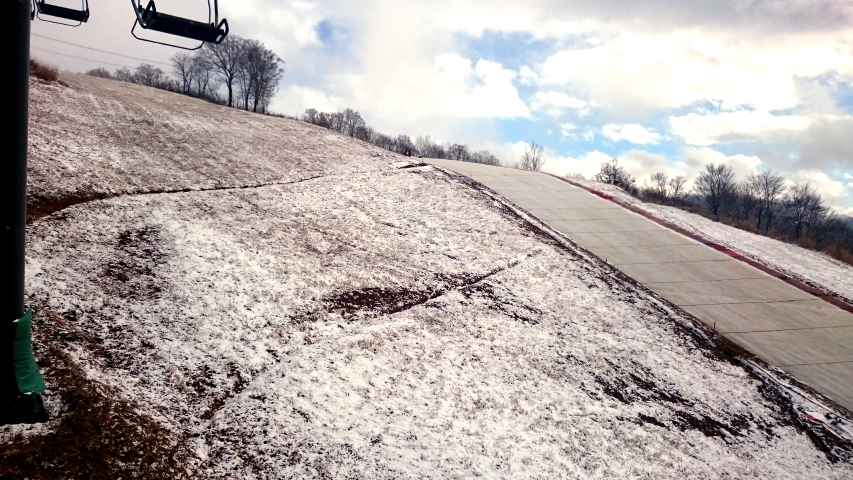 みつまたは、うっすらと雪が乗ってるだけで、みつまた〜かぐらまではキャリーサービス有り。