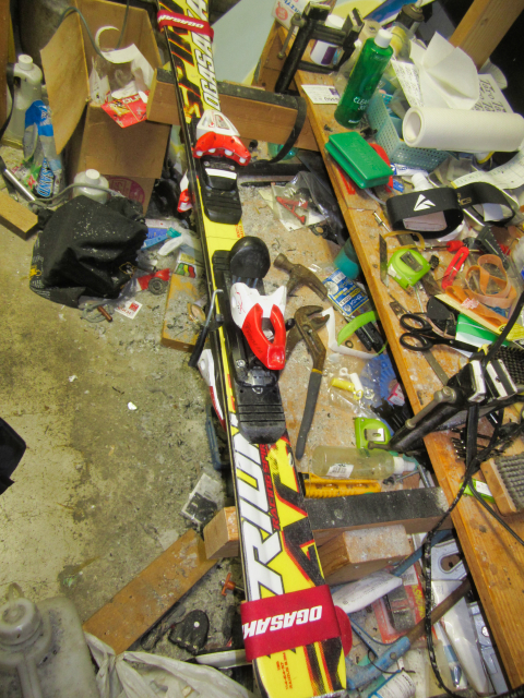 +今季は、まだGS板では滑っていないので、明日、バーンが良いうちに2〜3本滑らせるため準備。