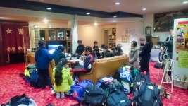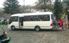 宿から尾瀬岩鞍のスキー場に出発するキッズ達