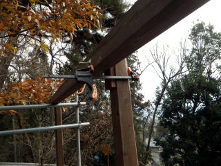 ![]() 12/1~2:南面のデッキの再生day18~19 エゴノキ材の塗装、次の材の準備・足場組み替え等 http://www.kay.ne.jp/daiku/d15_pergola_remake/d15_17/d15_17.html 南西の朽ちた桃パーゴラ~南面のデッキの再生 index http://www.kay.ne.jp/daiku/d15_pergola_remake/d15-index.html |
