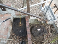 | 2026/3/8~9 南面の新ハウスの大実ムベの幹を囲う柵の工事の続き、 最上段のデッキ張りラテスを取付、新ハウス内の花壇に3種の苗植え |